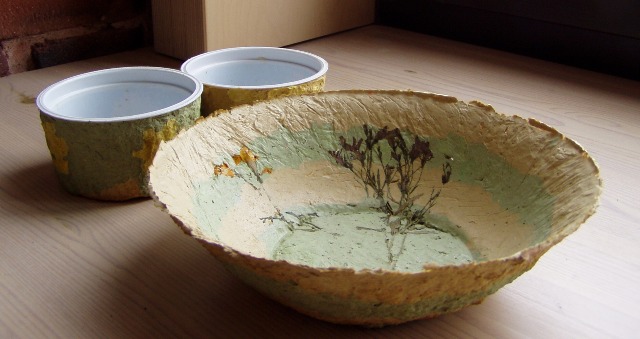 Purustatud pabermassist saab valmistada mitmesuguseid dekoratiivseid vorme ja tarbeesemeid.